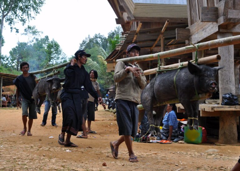 Uno de los aspectos más intrigantes de Sulawesi es la cultura Toraja, famosa por sus ceremonias funerarias. Estas ceremonias pueden durar días o semanas, y son fundamentales para asegurar el paso del alma al más allá según la creencia Toraja. Durante estos rituales, se realizan sacrificios de búfalos, cerdos y gallinas, que simbolizan prestigio y estatus social de la familia del difunto/a.